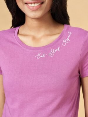 Dreamz by Pantaloons Women Printed Pure Cotton Round Neck Lounge T-Shirts