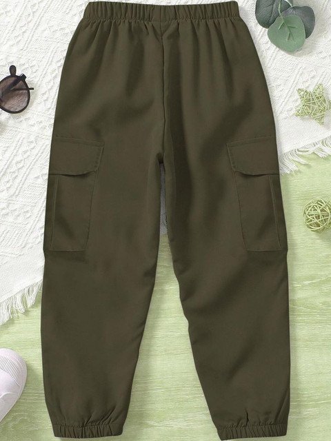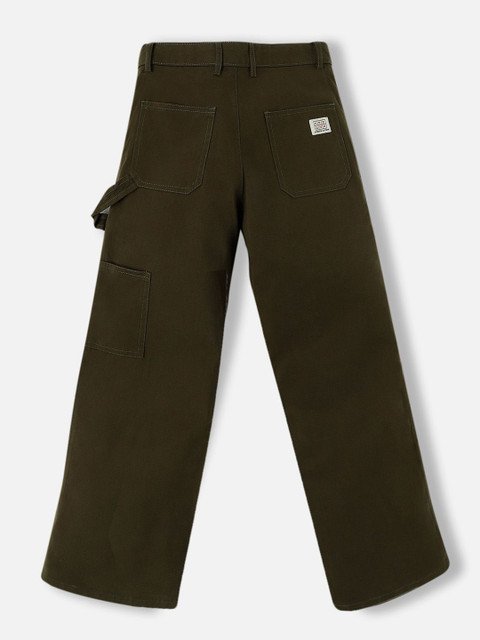 Urbano Juniors Boy’s Olive Loose Solid Carpenter Trouser with 5 Pockets Non-Stretchable
