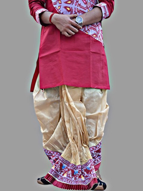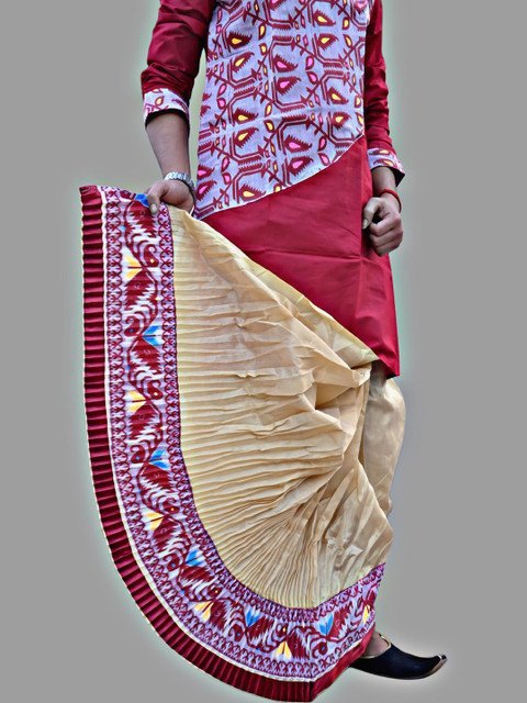 AMIT ONLINE Men Jamdani Border Mour Puccho Dhoti