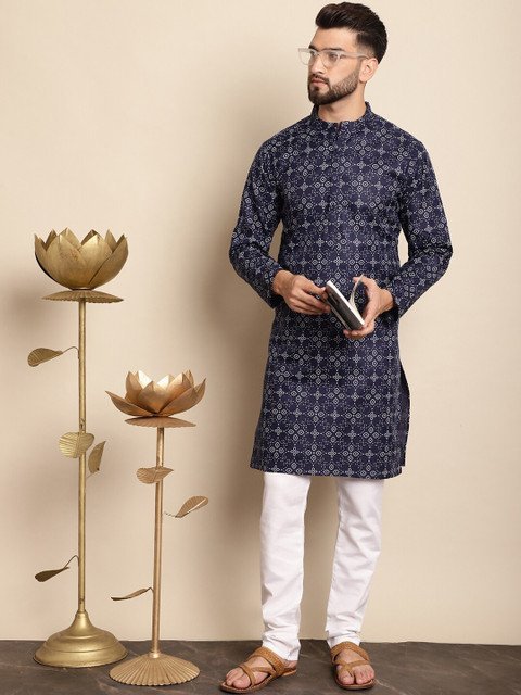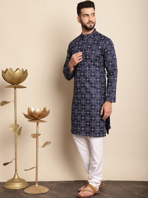 Navy blue printed Kurta with Churidar