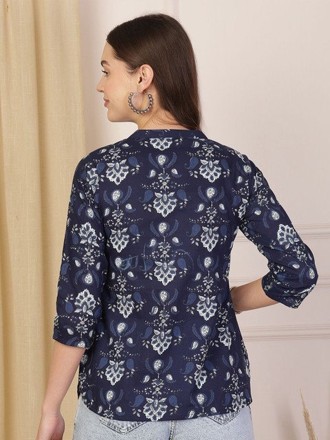 Anouk Rustic Floral Print Mandarin Collar Cotton Top