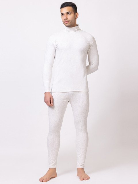 Off white solid mid-rise thermal bottoms has an elasticated waistband with slip-on closure