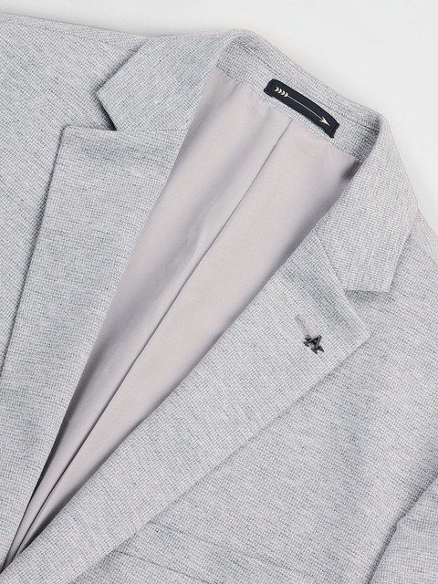 Grey self-Design slim-fit formal blazer, has a notched lapel, long sleeves, single-breasted with double button closure, two flap pockets, one welt pocket and a double-vented back hem