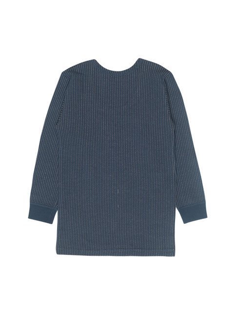 Navy blue ribbed thermal tops, has a round neck, full sleeves and slip-on closure