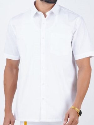 White solid Veshti ,has a slip-on closure