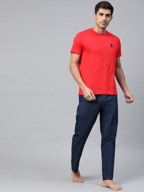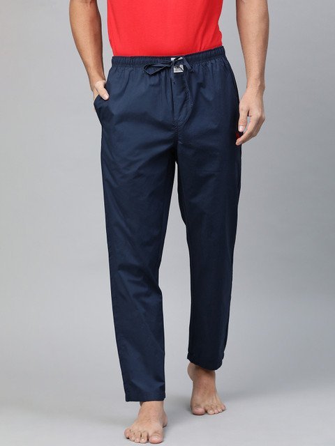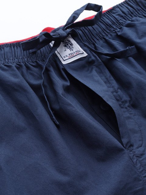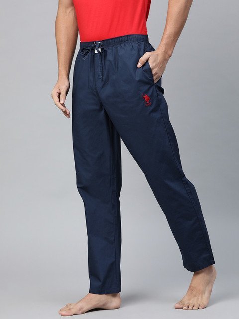 Buy U.S. Polo Assn. Men Navy Blue Solid Pure Cotton Lounge Pants – – Apparel for Men