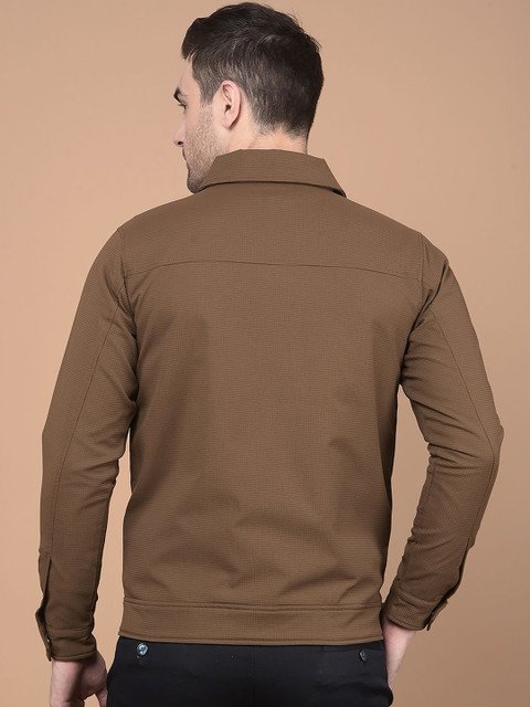 Crimsoune Club Men Spread Collar Self Design Casual Bomber Lightweight Jacket
