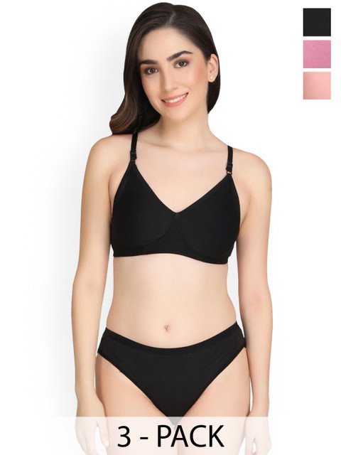 Designer Bugs Women Pack Of 3 Seamless Lightly-Padded Lingerie Set DBLS-B-RG-BP-30B