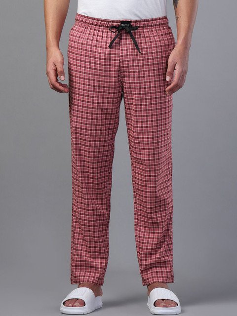 DON VINO Men Checked Pure Cotton Mid-Rise LoungePants