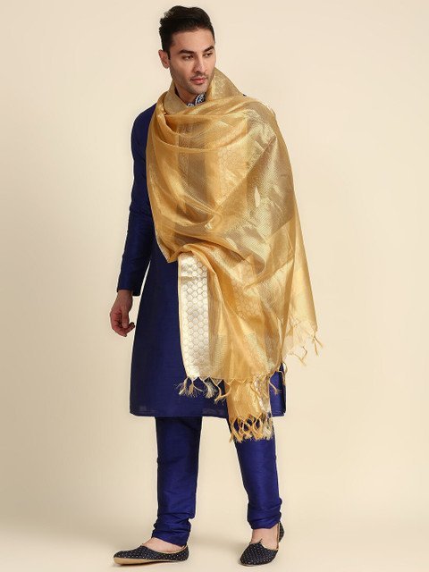 Dupatta Bazaar Men Gold-Toned Woven Design Dupatta