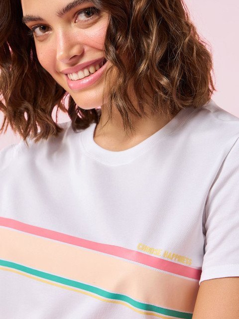 White and green striped lounge t-shirt, has a round neck and short sleeves with slip-on closure