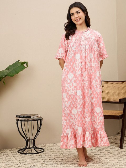 ETC Women Pure Cotton Printed Maxi Nightdress