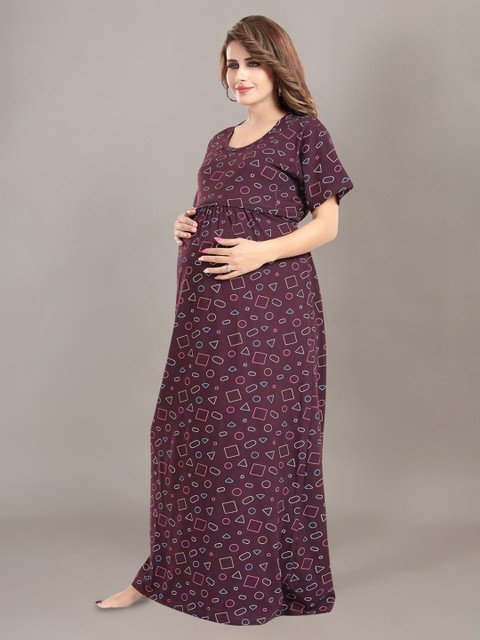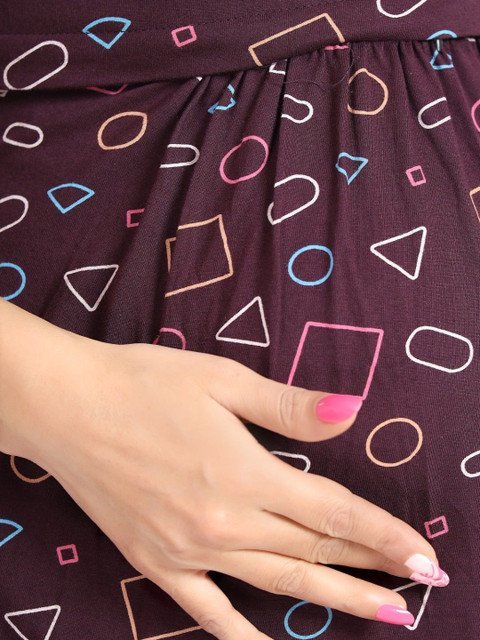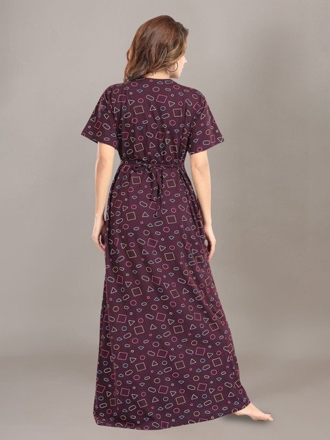 Fabme Women Geometric Printed Round Neck Maxi Nightdress