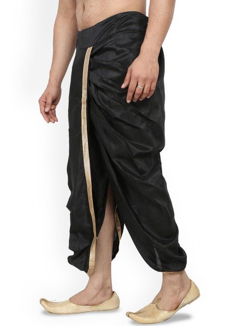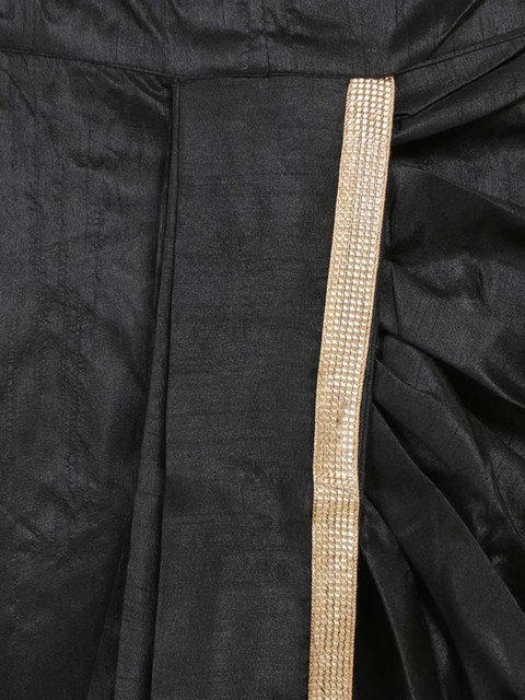 Black solid pleated dhoti pant with lace border, has slip-on closure