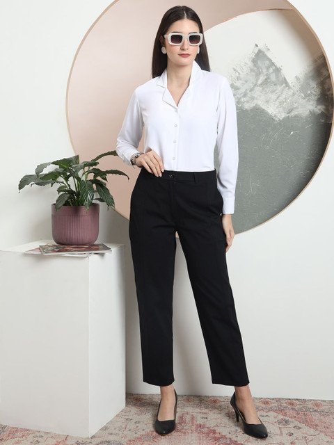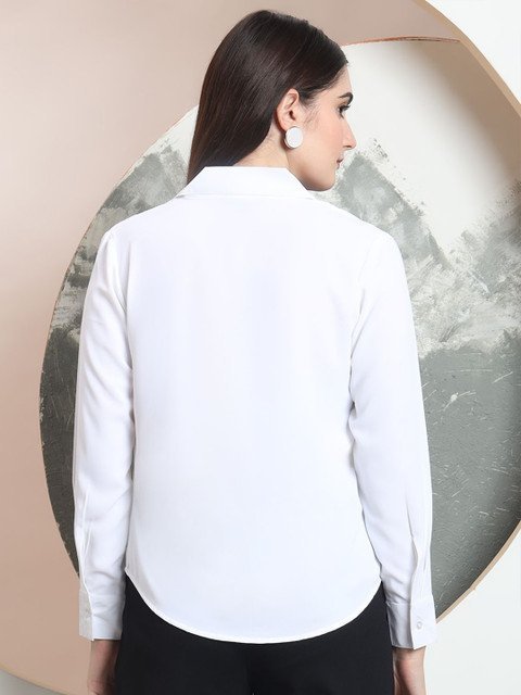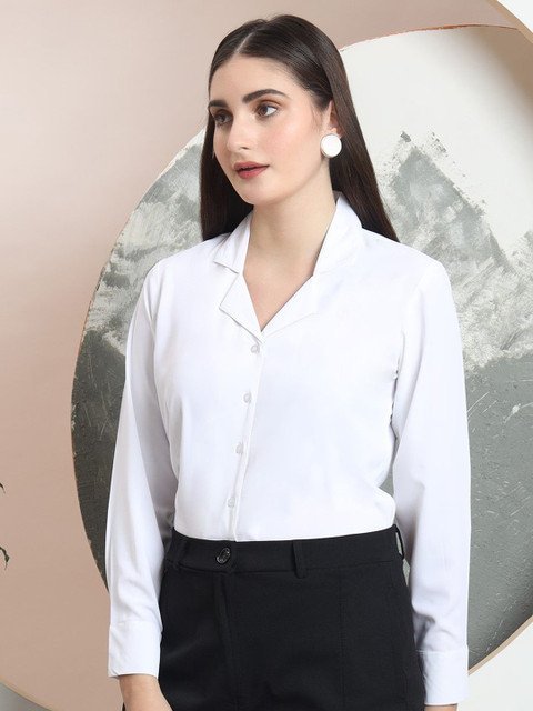 FITHUB Women Cuban Collar Solid Cotton Formal Shirt