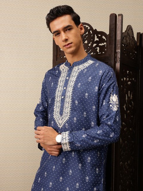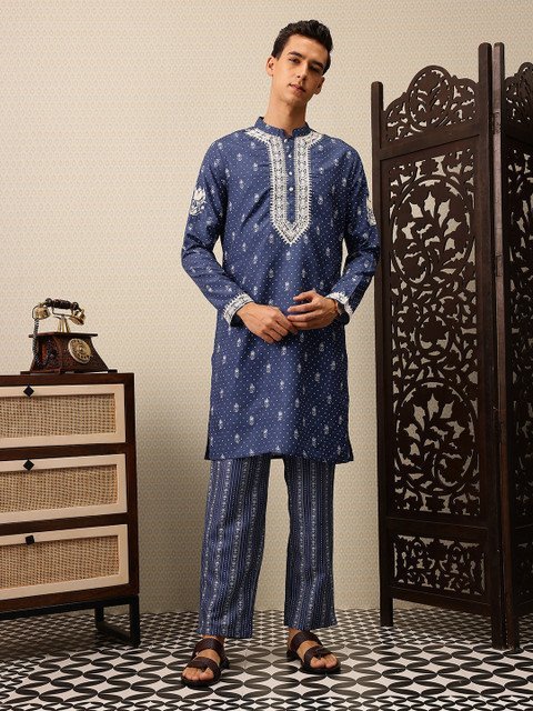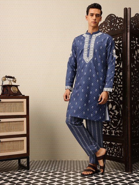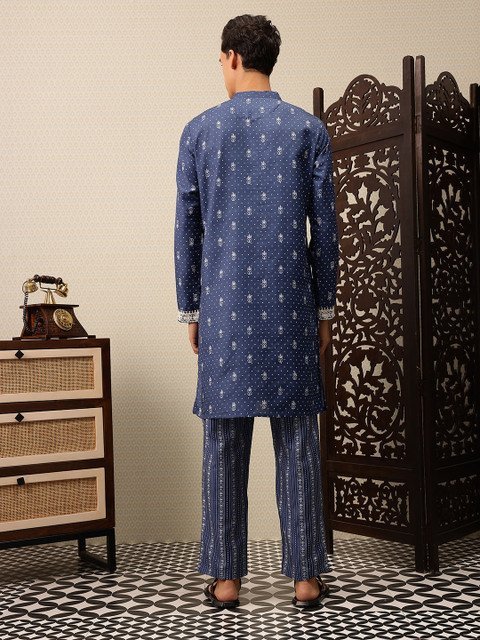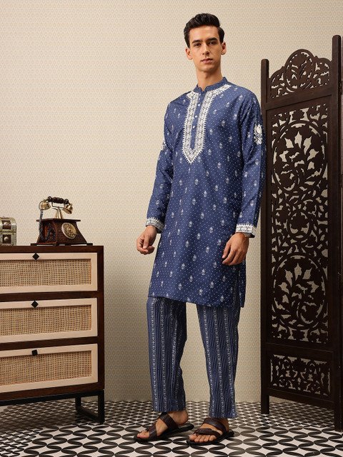 House of Pataudi Floral Printed & Thread Work Jashn Kurta with Trousers