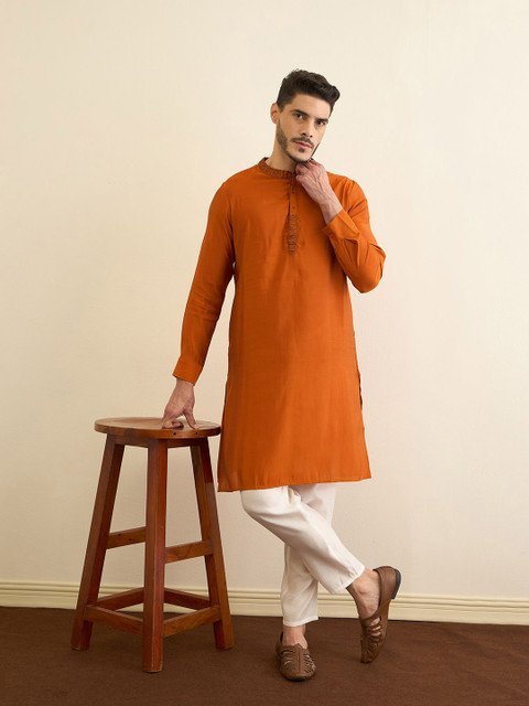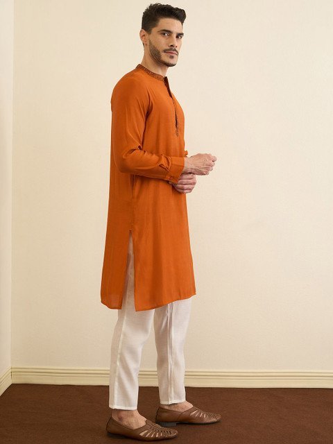 House of Pataudi Men Stuuded Mandarin Collar Straight Kurta & Trousers
