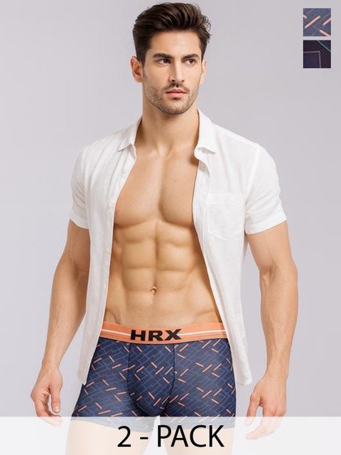 HRX by Hrithik Roshan Pack Of 2 Printed Trunks RE-HTO-PV-PRINT-101-110-S-Orange/Blue