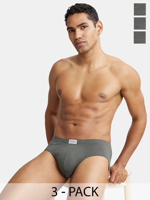 Jockey Pack of 3 Super Combed Cotton Solid Brief with Ultrasoft Concealed Waistband-8035
