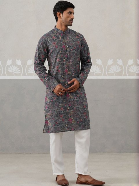 Jompers Geometric Printed Mandarin Collar Kurta With Pyjamas