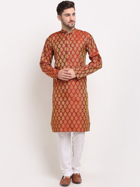 Jompers Men Maroon Ethnic Motifs Printed Regular Kurta with Pyjamas