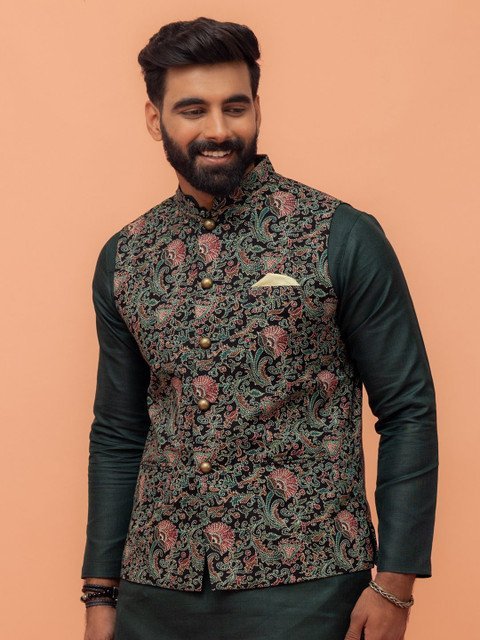 Kisah Men Mandarin Collar Printed Nehru Jacket