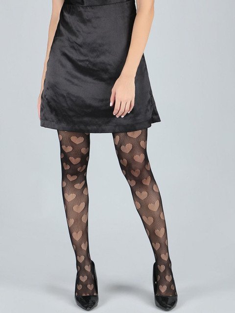 Black solid sheer stockings, has an elasticated waistband and slip-on closure