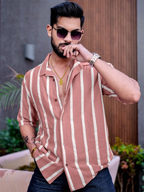 Maniac Comfort Striped Cuban Collar Oversized Casual Shirt