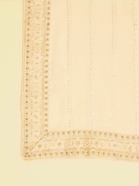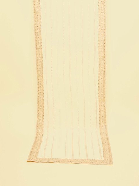 Cream and gold-toned floral embroidered sequinned dupatta, has taping border