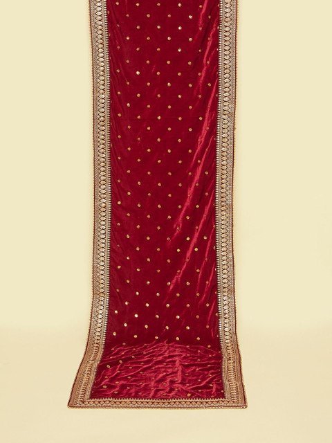 Maroon and gold-toned ethnic motifs embroidered dupatta, embellished border
