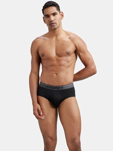 Five solid basic briefs in black, each has an inner elasticated waistband, double layered and contoured pouch