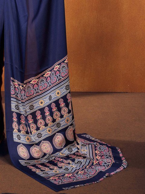 Mitera modal Ajrak Block Satin Designer SareeWith Blouse Piece
