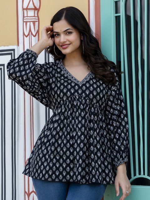 Nayo Ethnic Motifs Printed Cotton Empire Top