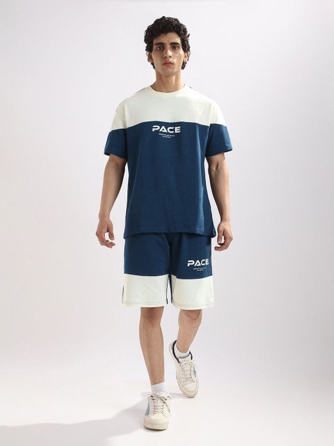 NOBERO Men Oversized Colorblocked Pace Dual Tone T-shirt & Shorts Co-Ords
