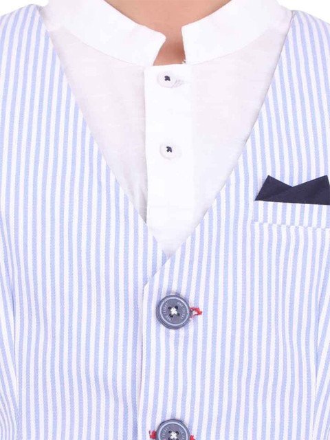 Blue & white Striped waistcoat has a V-Neck Sleeveless with button Closure