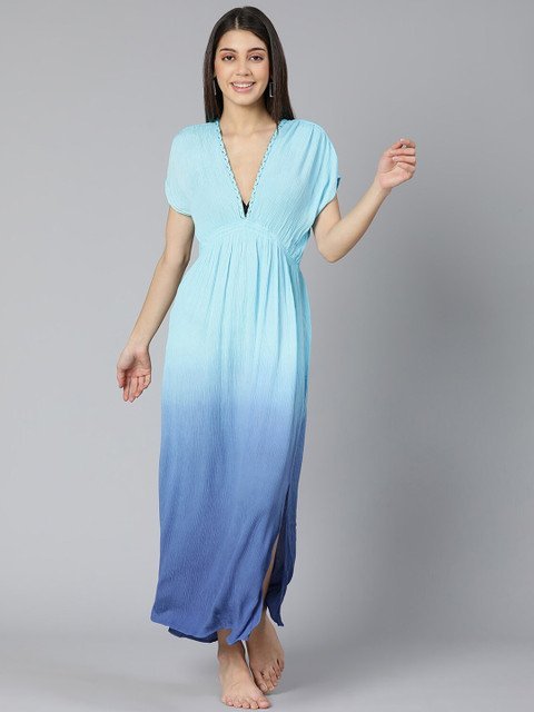 Oxolloxo Women Blue Tie & Dye Printed Beachwear Dress
