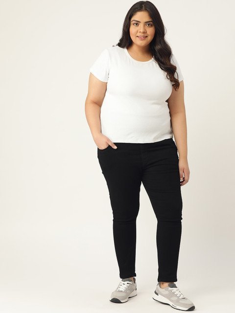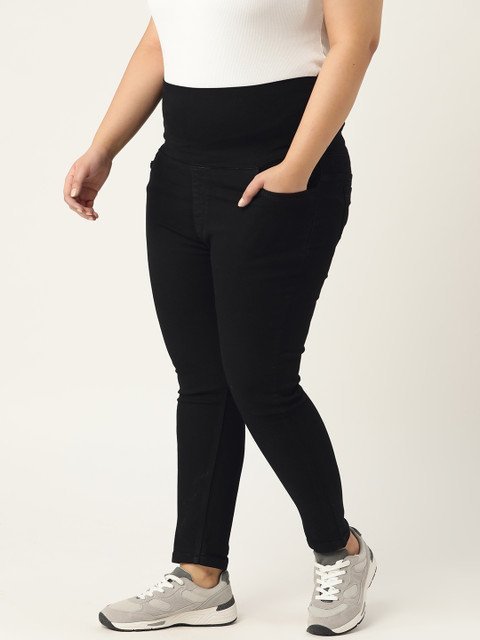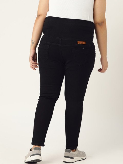 PARIS HAMILTON Plus Size Women Black Solid Tummy Tucker Stretchable Denim Jeggings