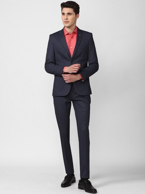 Peter England Elite Men 2 Piece Navy Blue Single Breasted Slim Fit Formal Suit