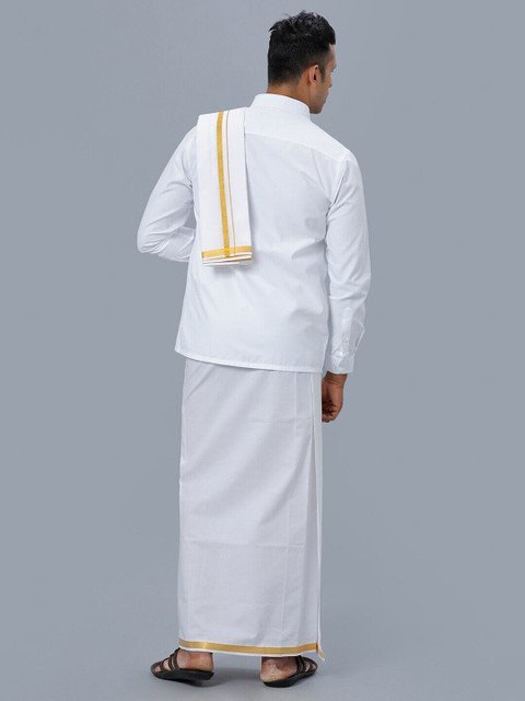 Be the first to review “Ramraj Long Sleeves Pure Cotton Shirt With Golden jari Veshti & Angavastram”