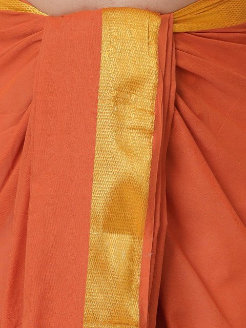 Kavi colour solid panchakacham with angavastram, has gold zari border.