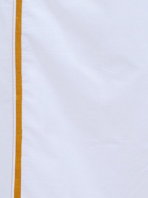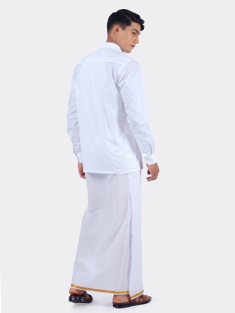 Ramraj Men White Solid PolyCotton Shirt with gold border White Dhoti