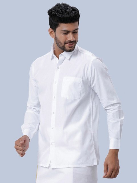 Ramraj Shirt Collar Long Sleeves Zari Pure Cotton Shirt With Veshti