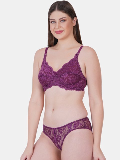 Reveira Floral Laced Lingerie Set Lingerie Set Camila-Wine-30