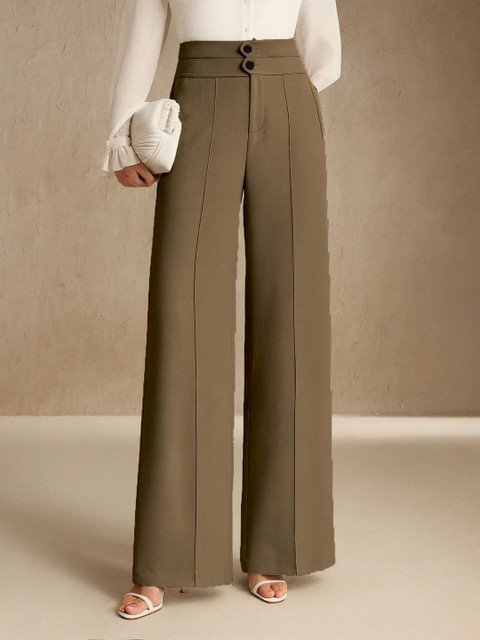 SAKHWALA Women Relaxed Straight Leg Loose Fit High-Rise Wrinkle Free Trousers