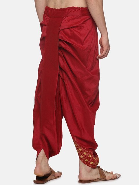 Sethukrishna Men Maroon Embroidered Dhoti Pants