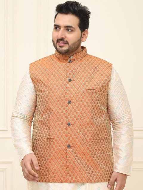 SOJANYA PLUS Men Printed Nehru Plus Size Jacket