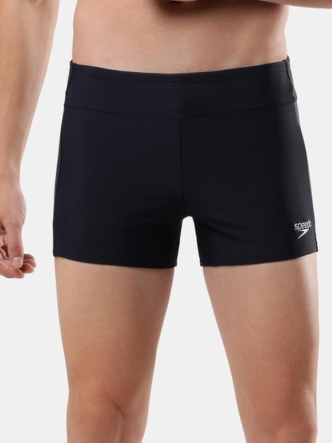 Solid mid-rise swimming sports shorts, has slip-on closure