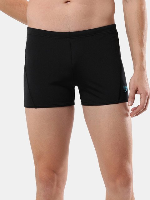 Solid mid-rise swimming sports shorts, has slip-on closure