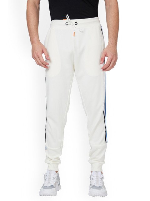 White regular-fit mid-rise track pants, has an elasticated waistband with drawstring closure and two pockets and cuffed hems
