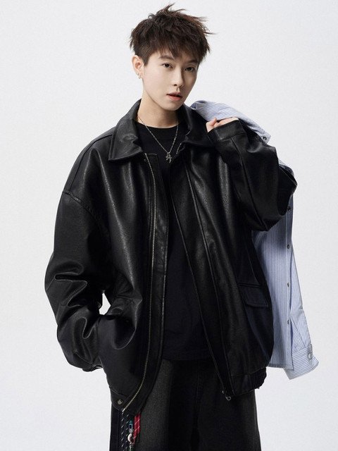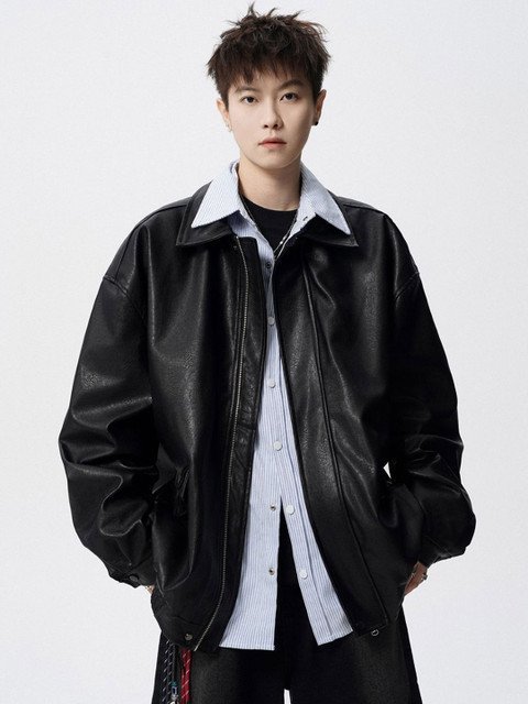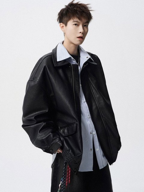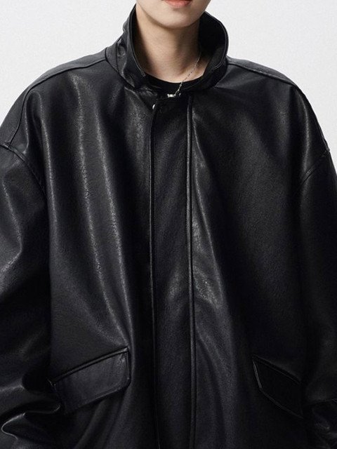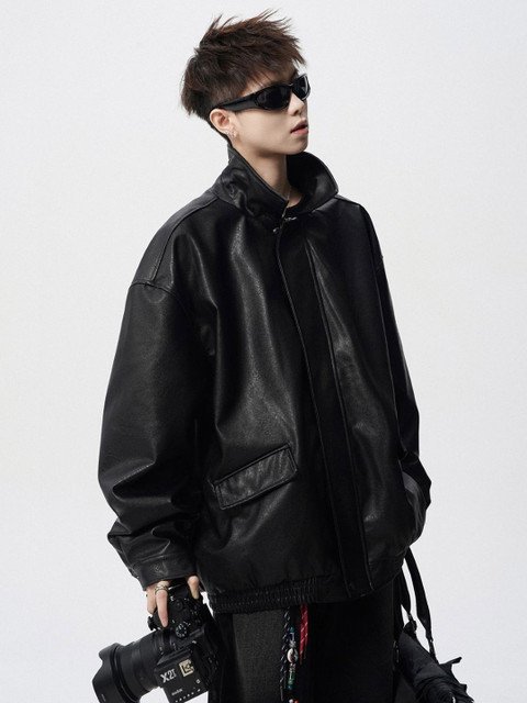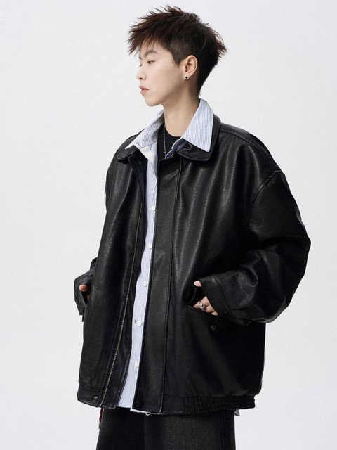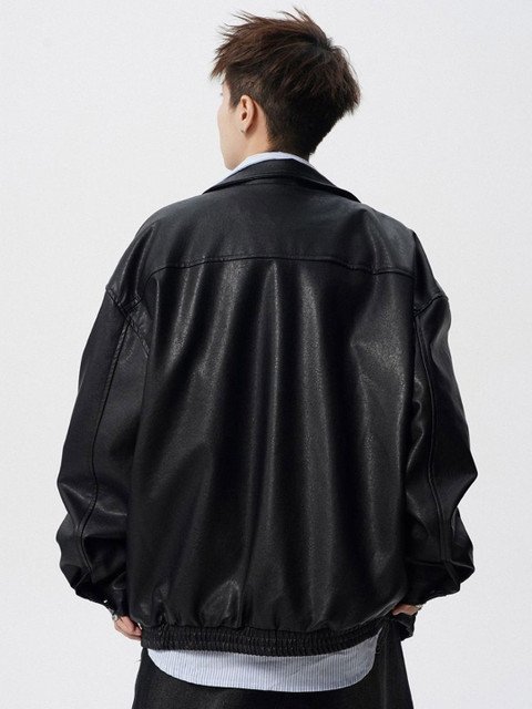 StyleCast Men Spread Collar Long Sleeves Leather Jacket